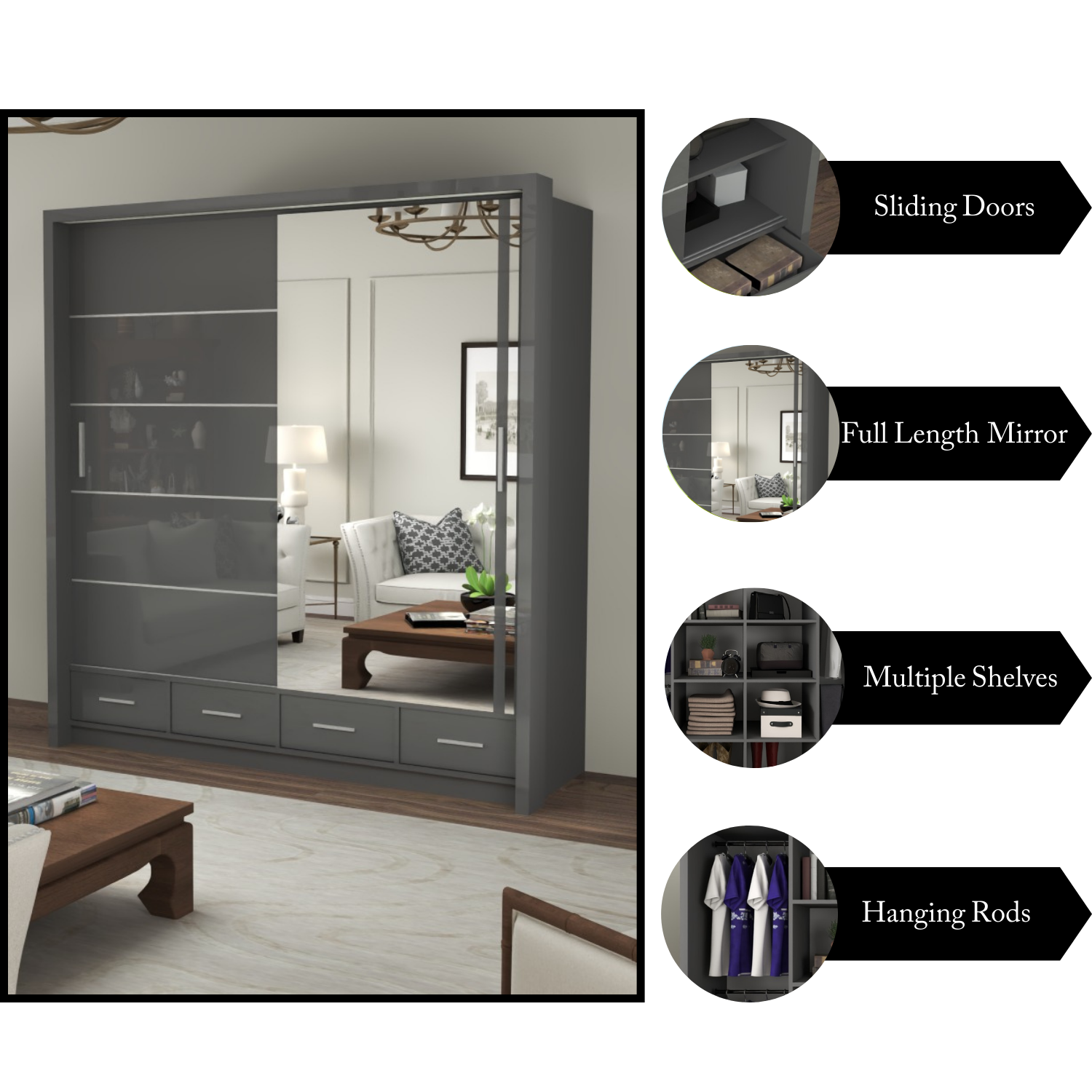 - The Mirror of the Sycylia High Gloss wardrobe is designed nicely to provide you the unique look.