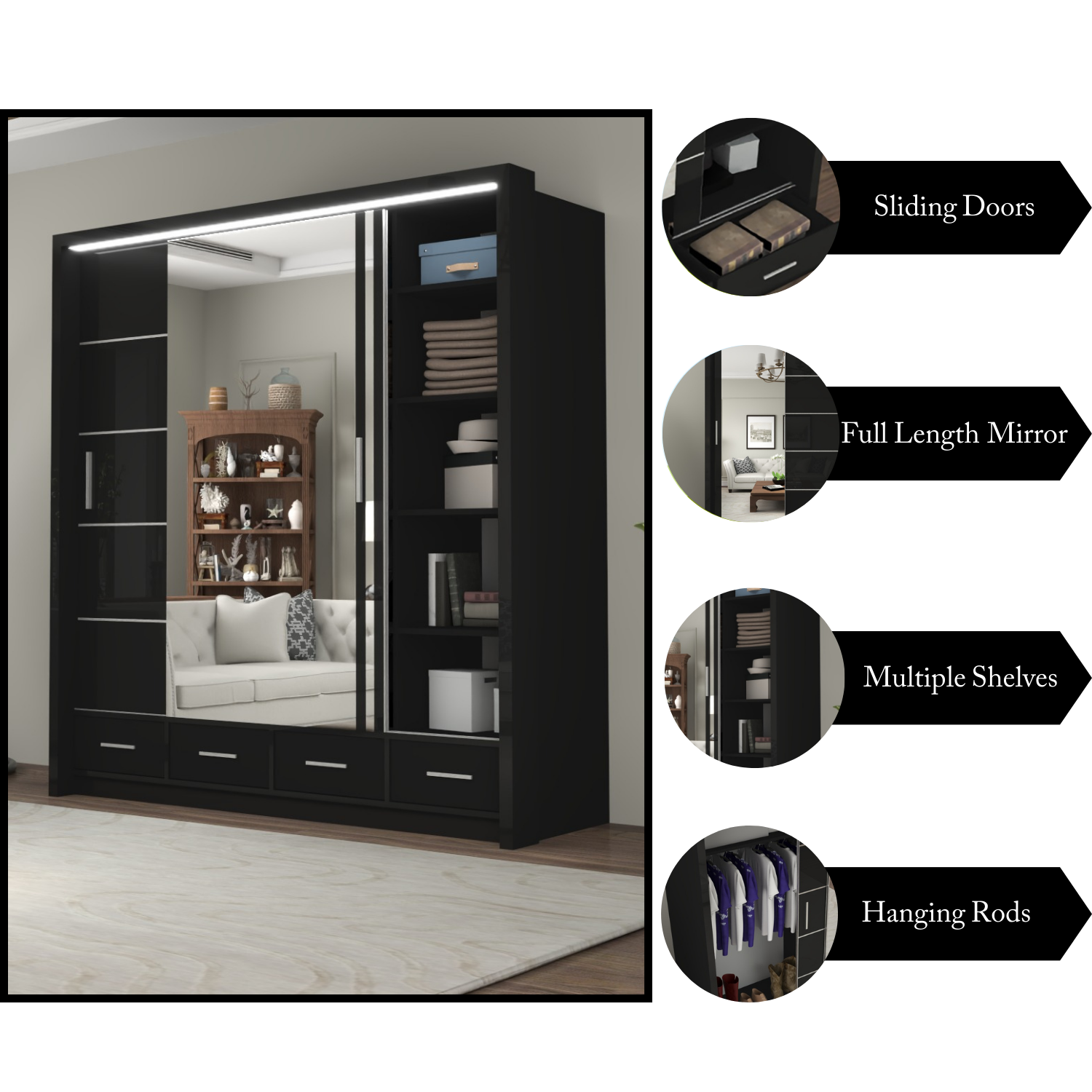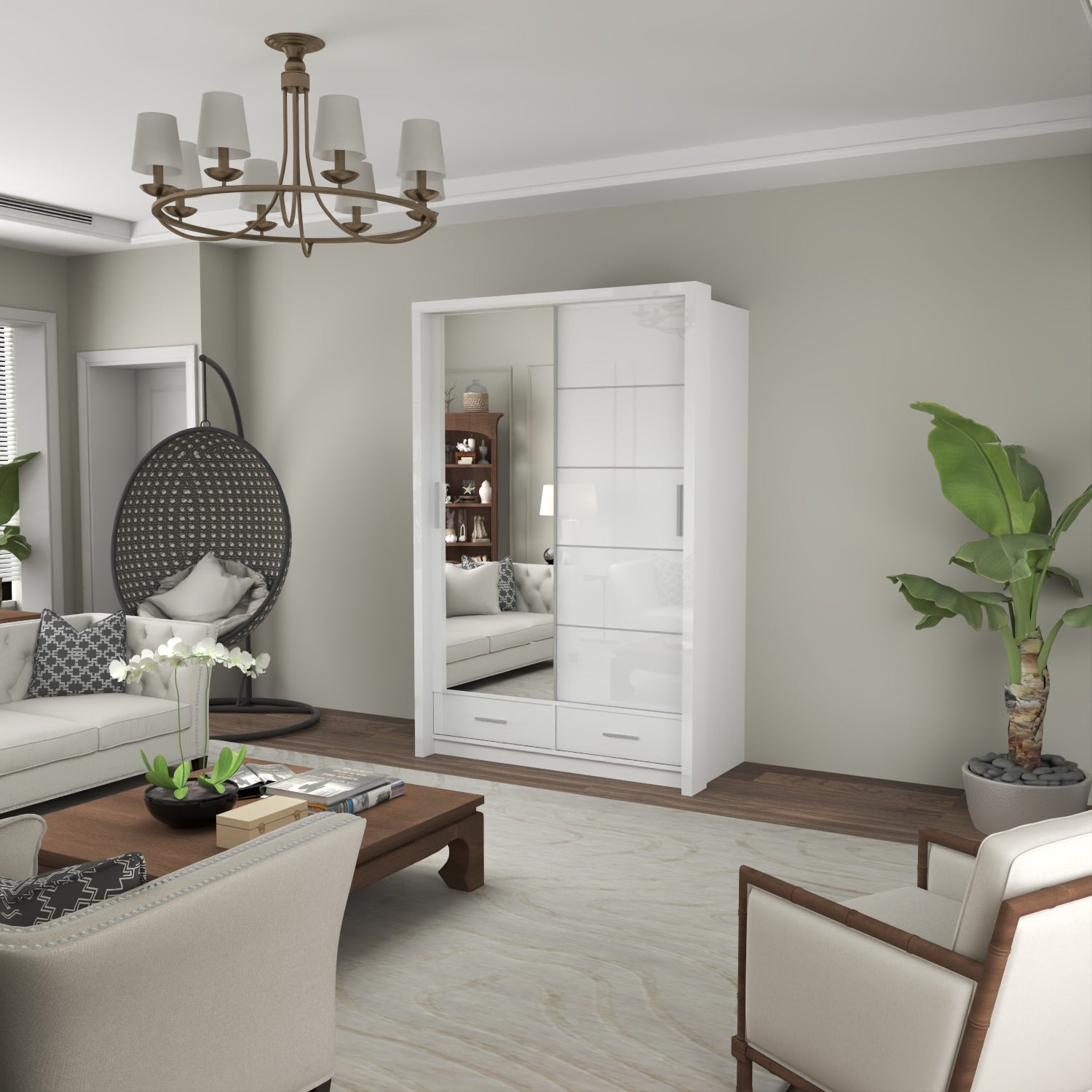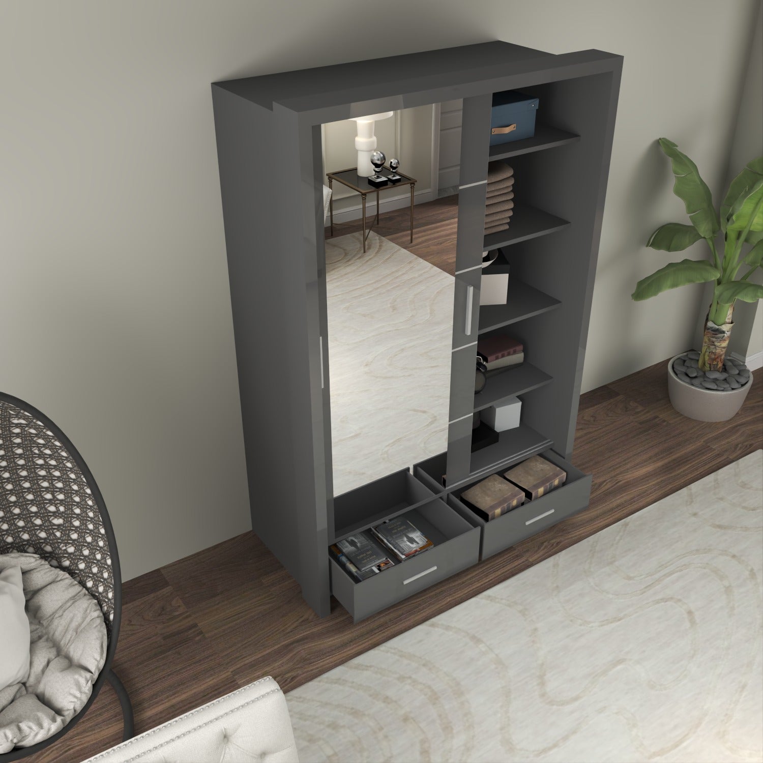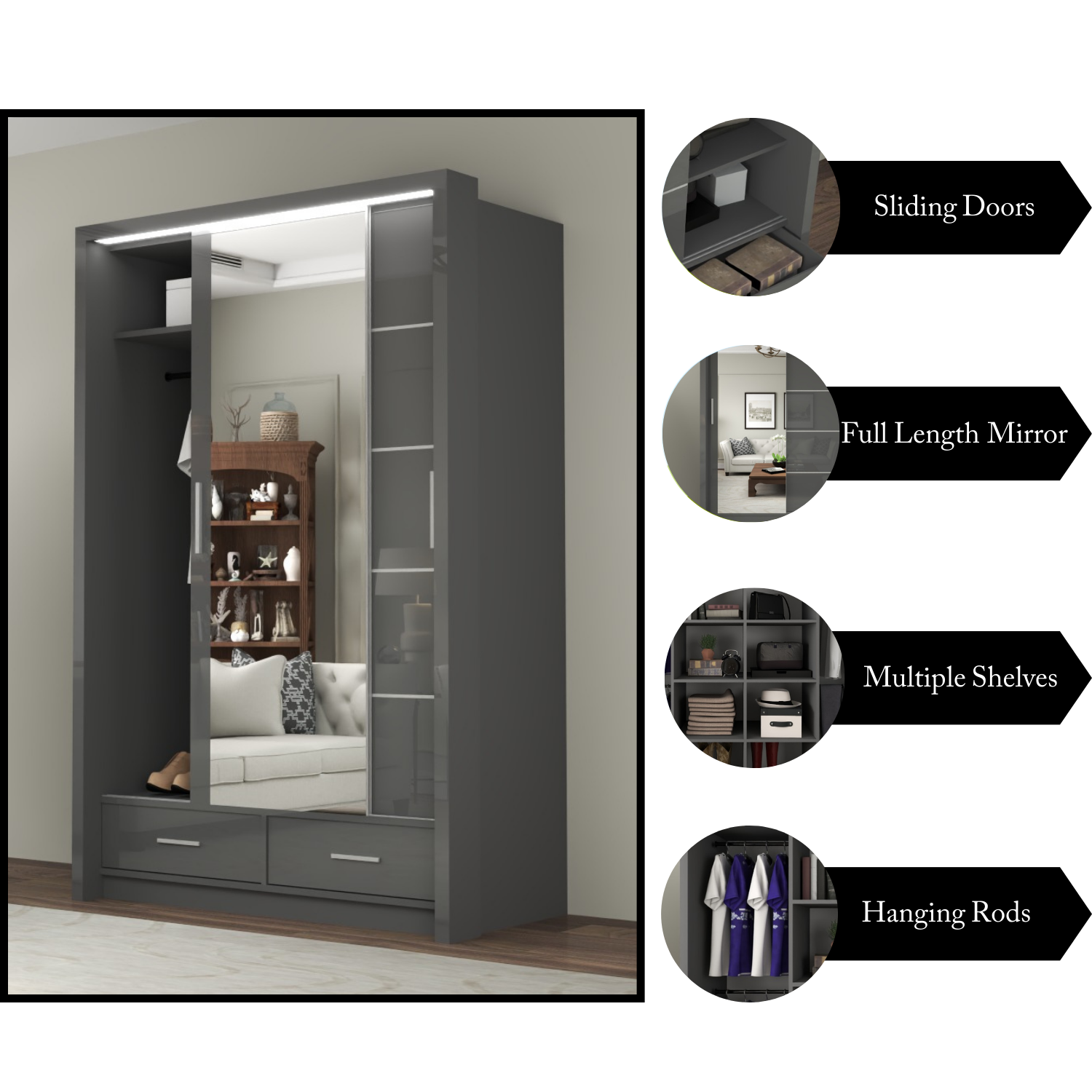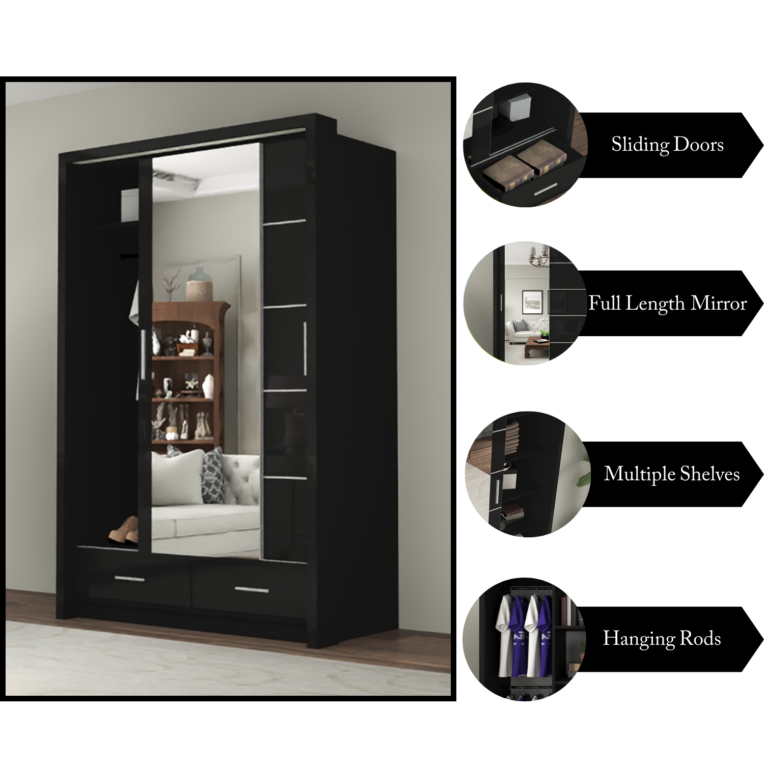 - The wardrobe has High gloss doors to provide you with a luxurious look to your home.
