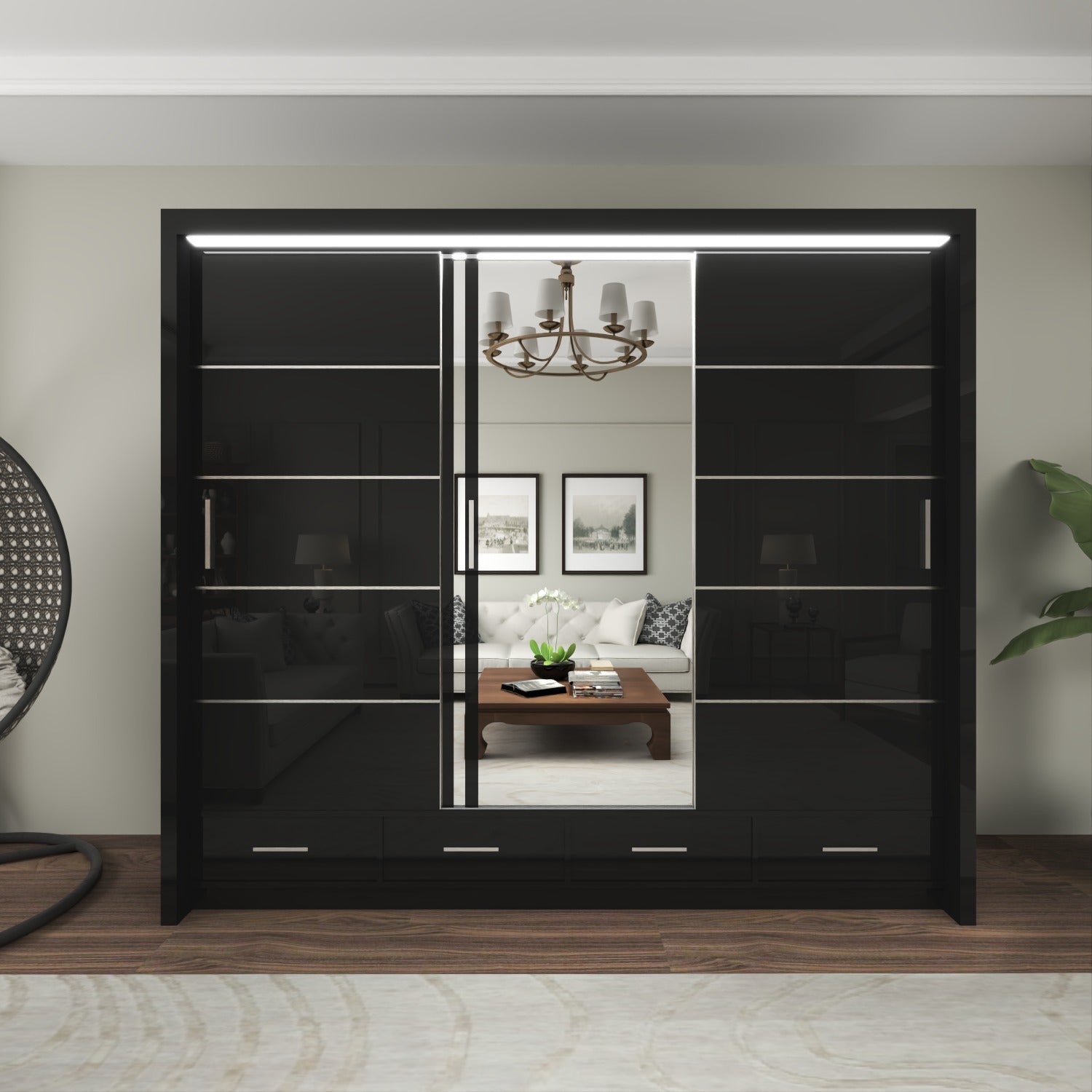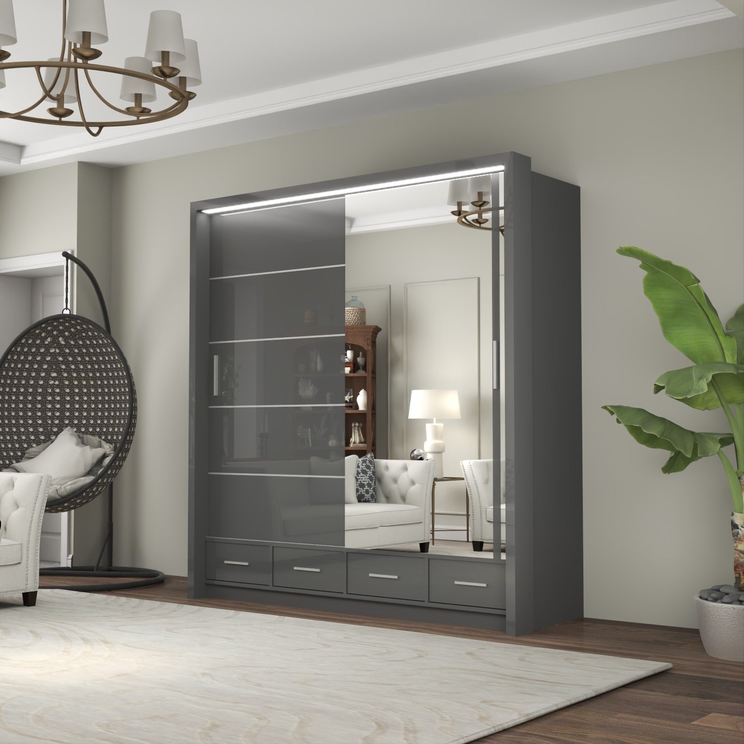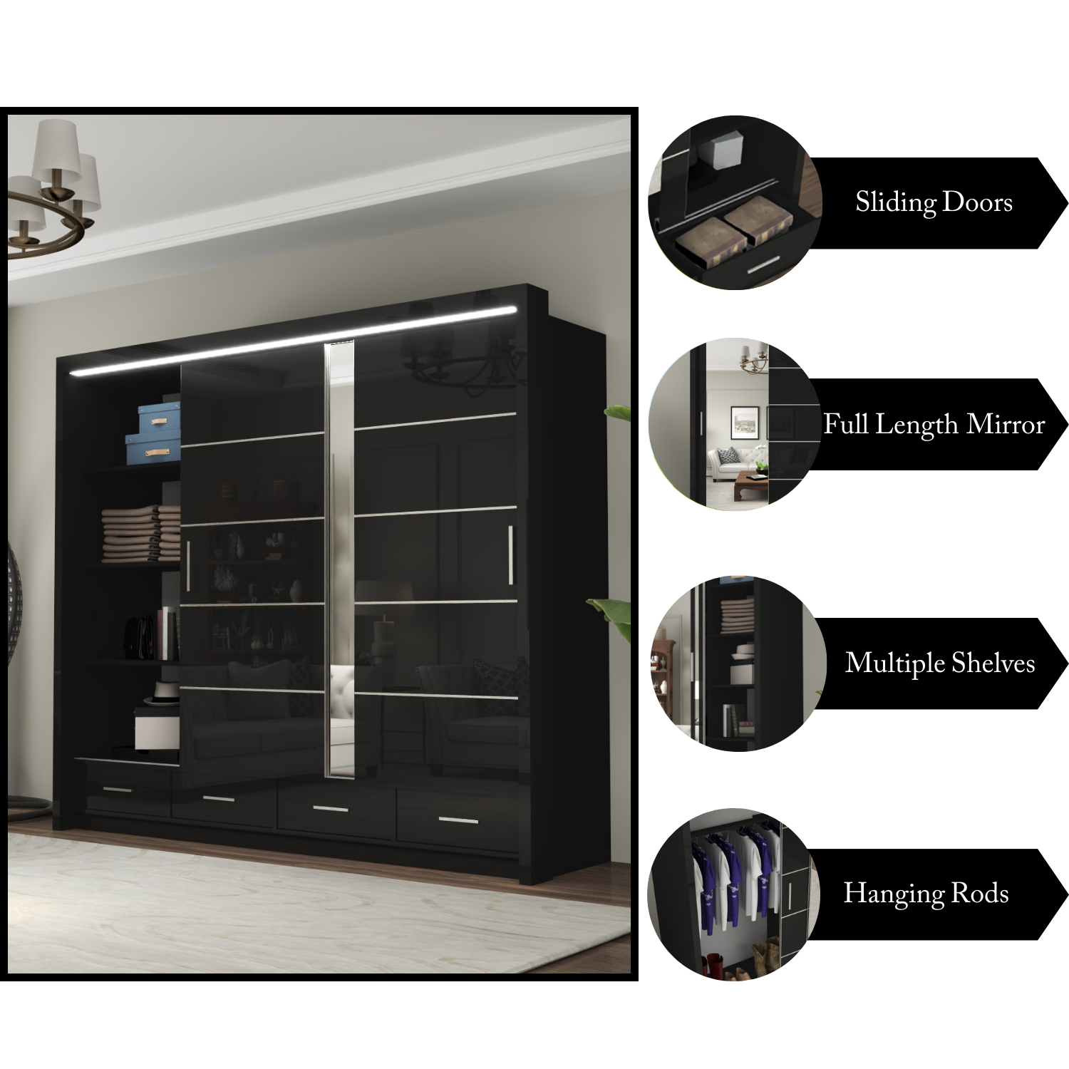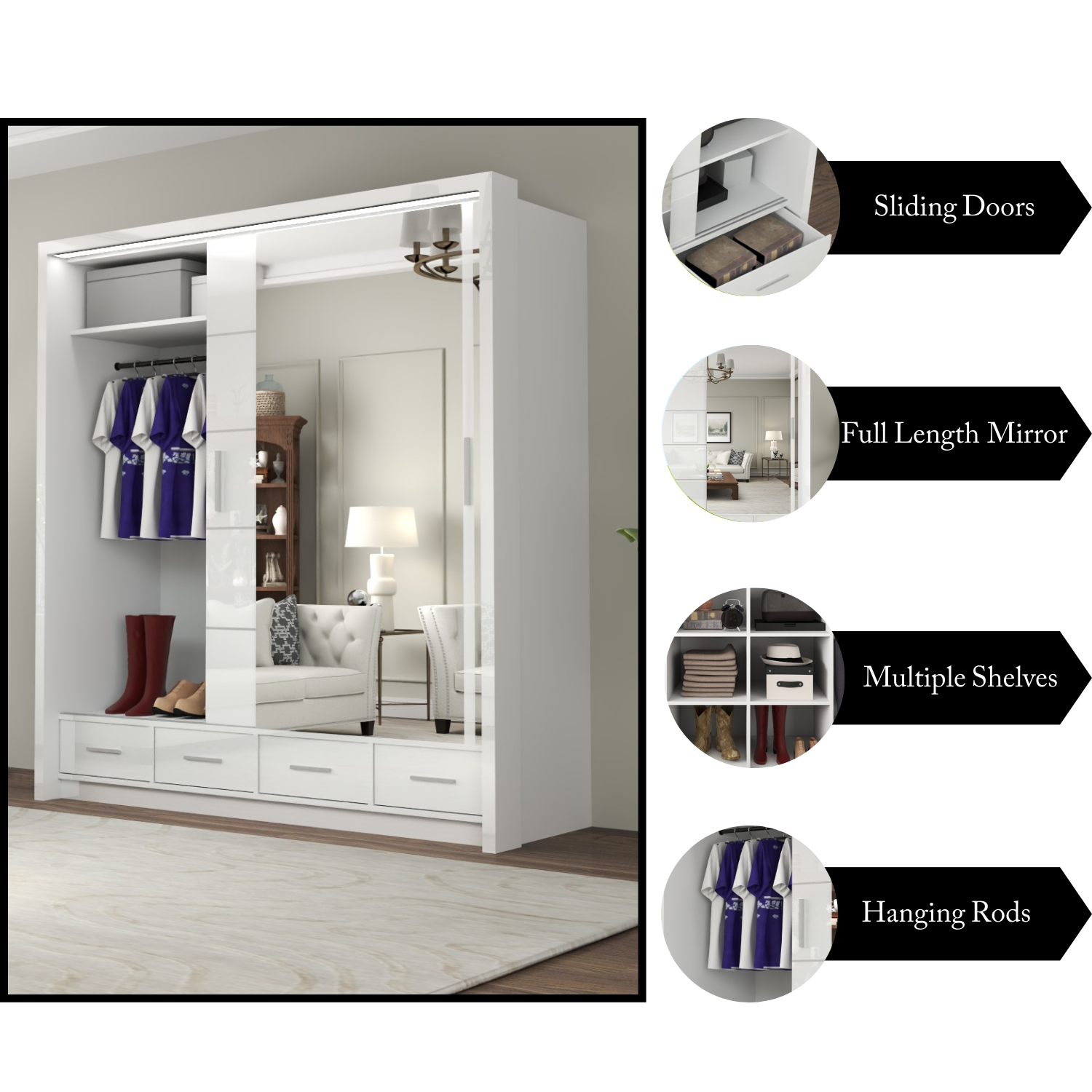 Material: The wardrobe is made from MDF Chipboard with a High Gloss door finish to provide luxuries look to your home