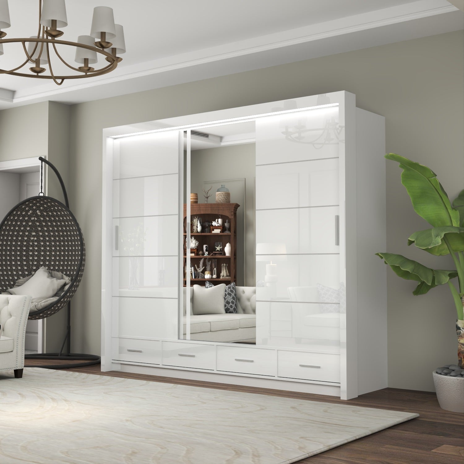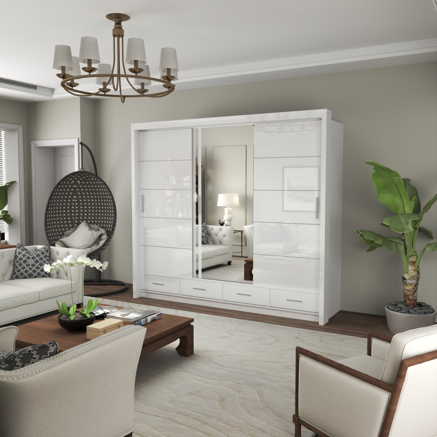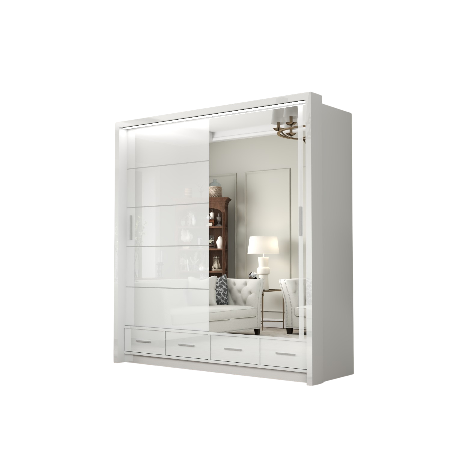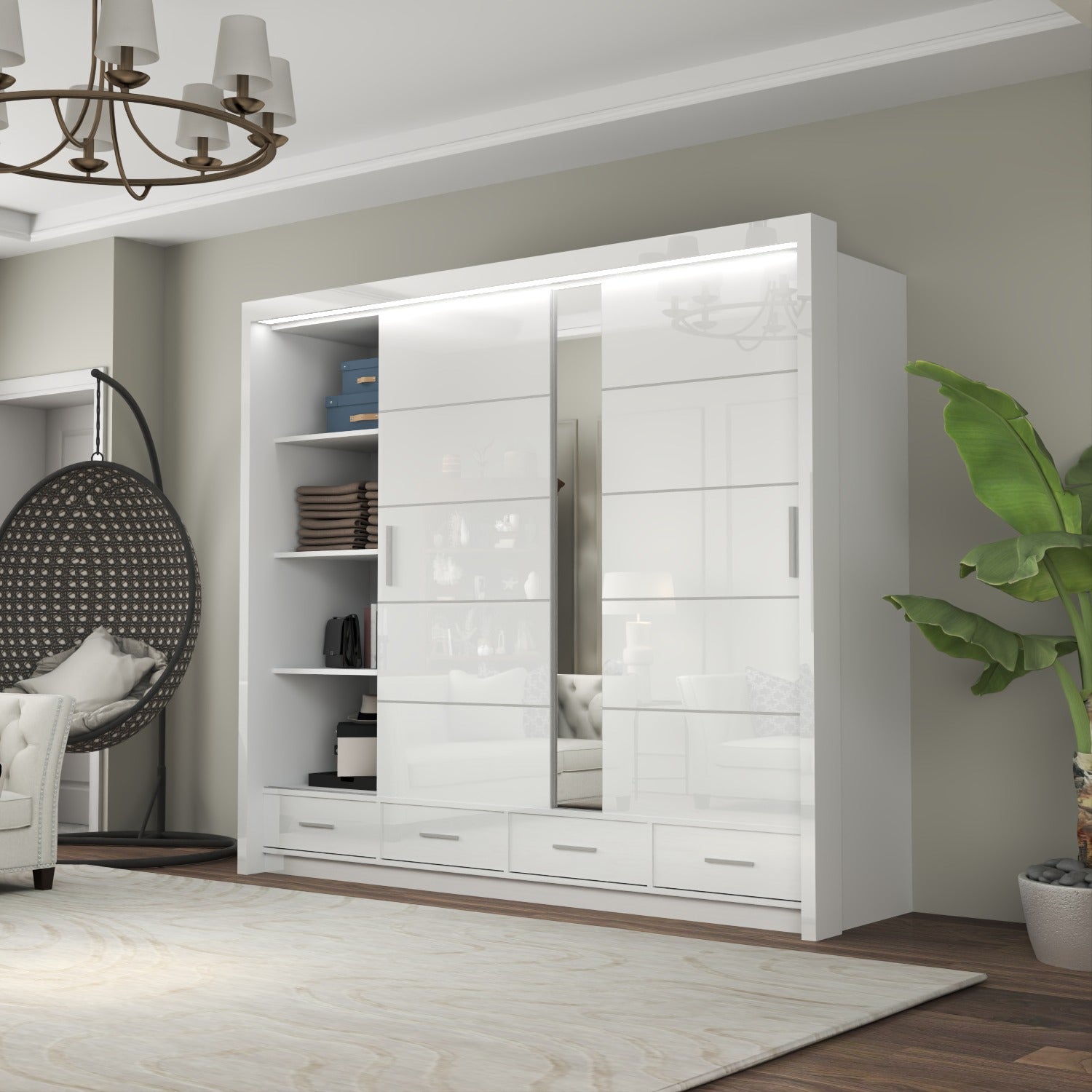 HIGH GLOSS SYCYLIA WHITE WARDROBE 150cm-208cm-255CM