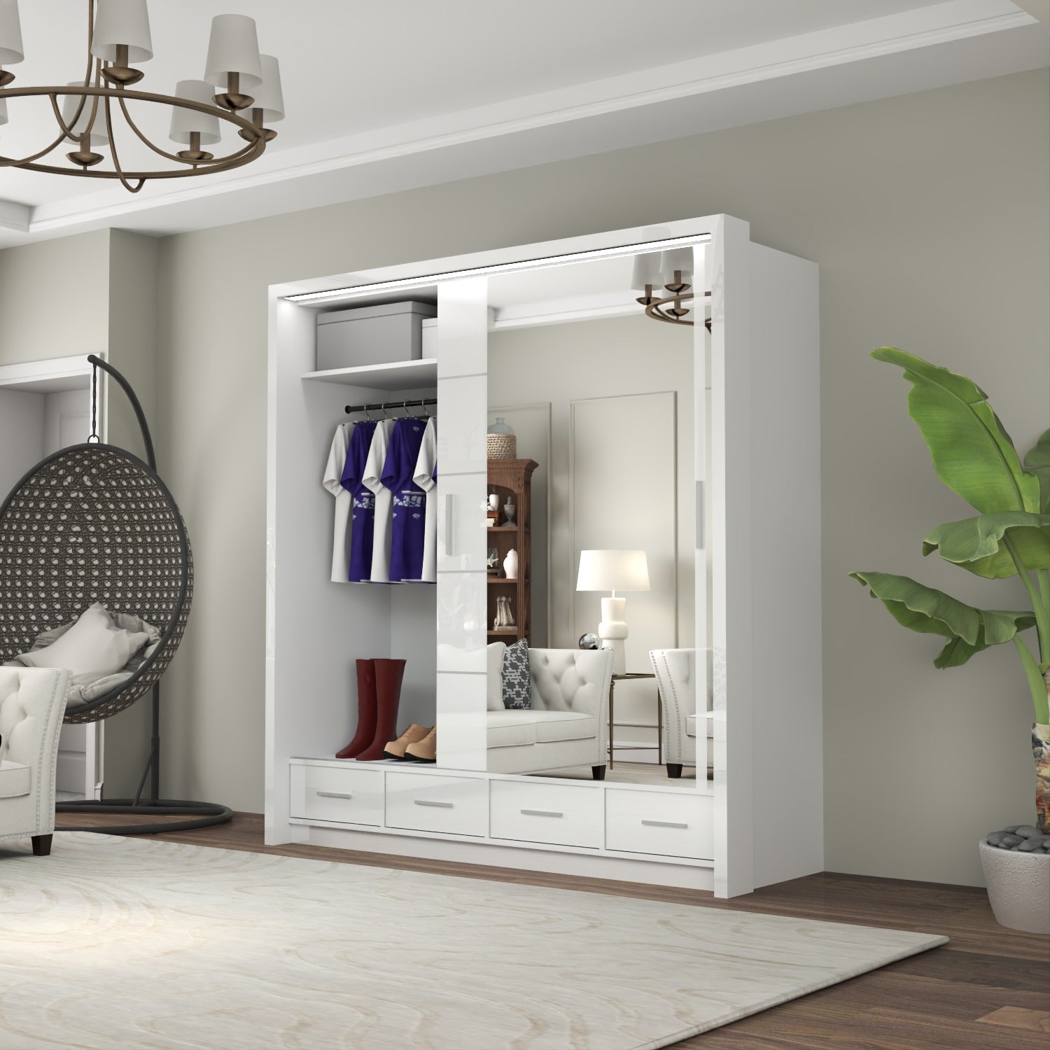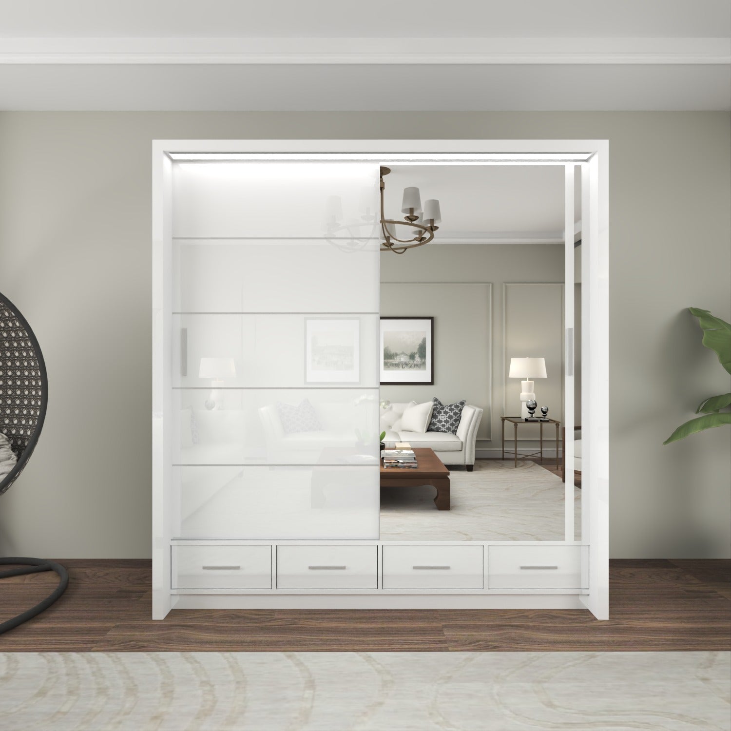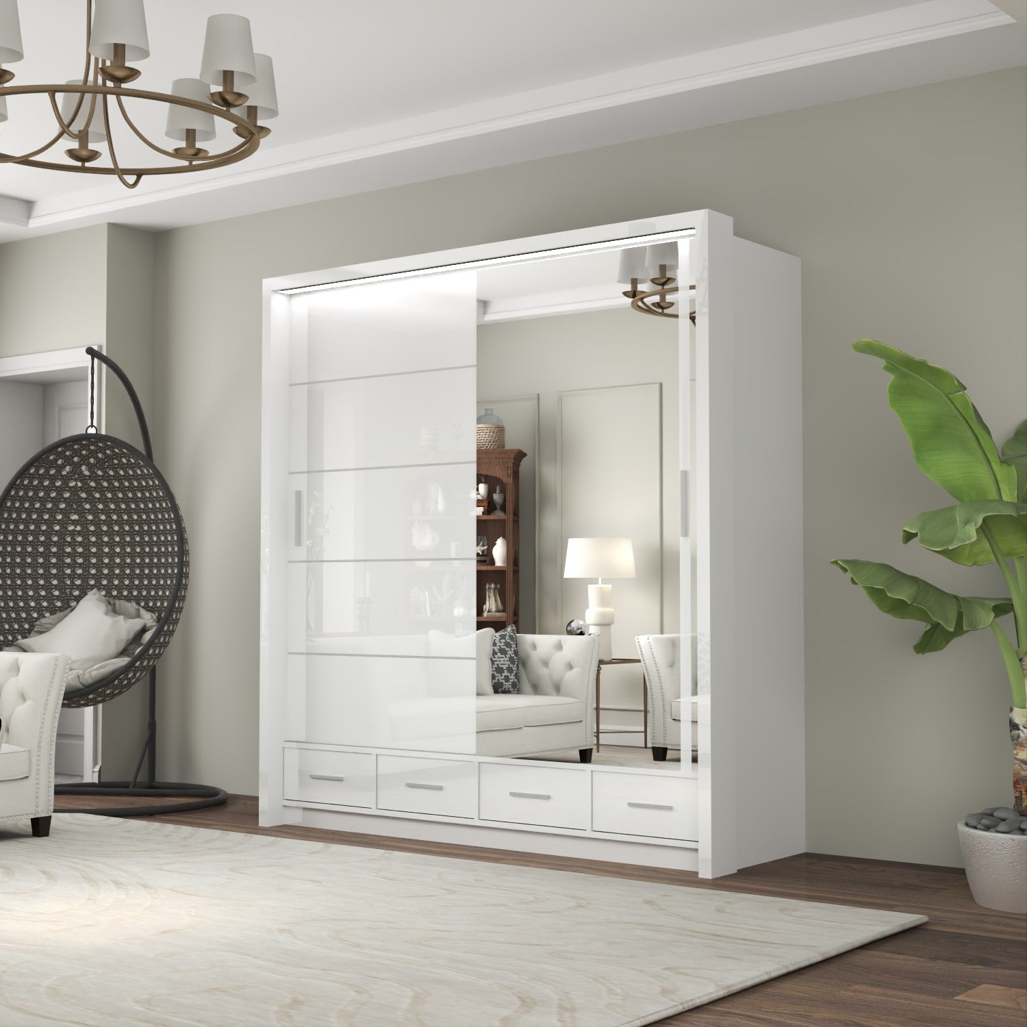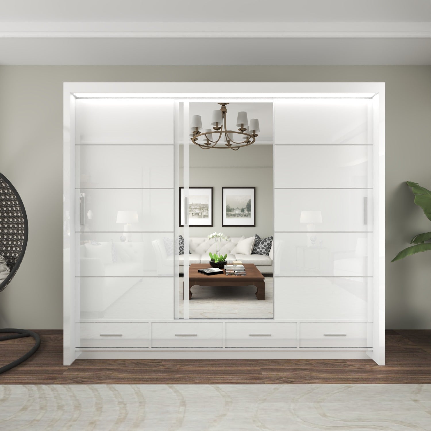 HIGH GLOSS SYCYLIA WHITE WARDROBE 150cm-208cm-255CM