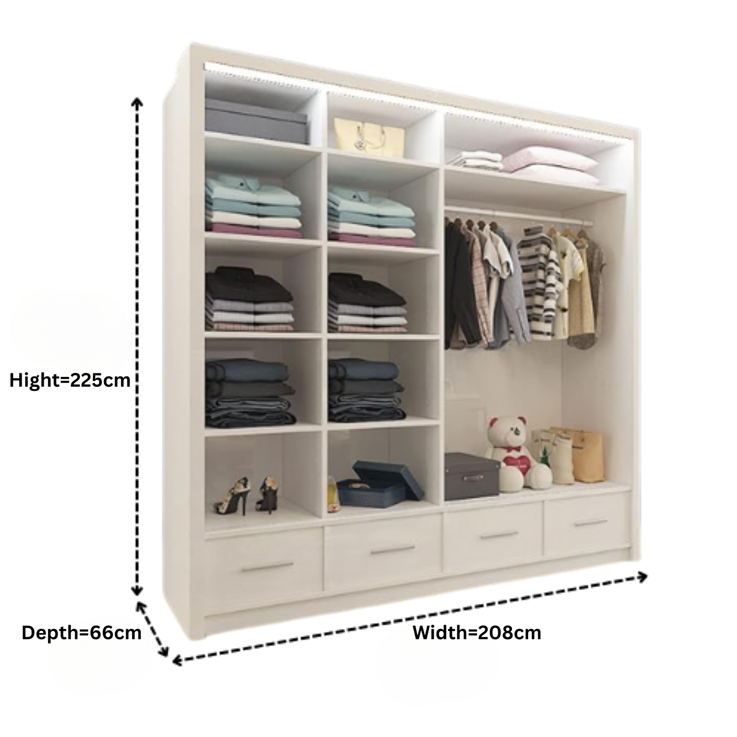 - One of the main features of our Product is that all of the wardrobes are free-standing wardrobes you do not need any sport to stand your wardrobe.