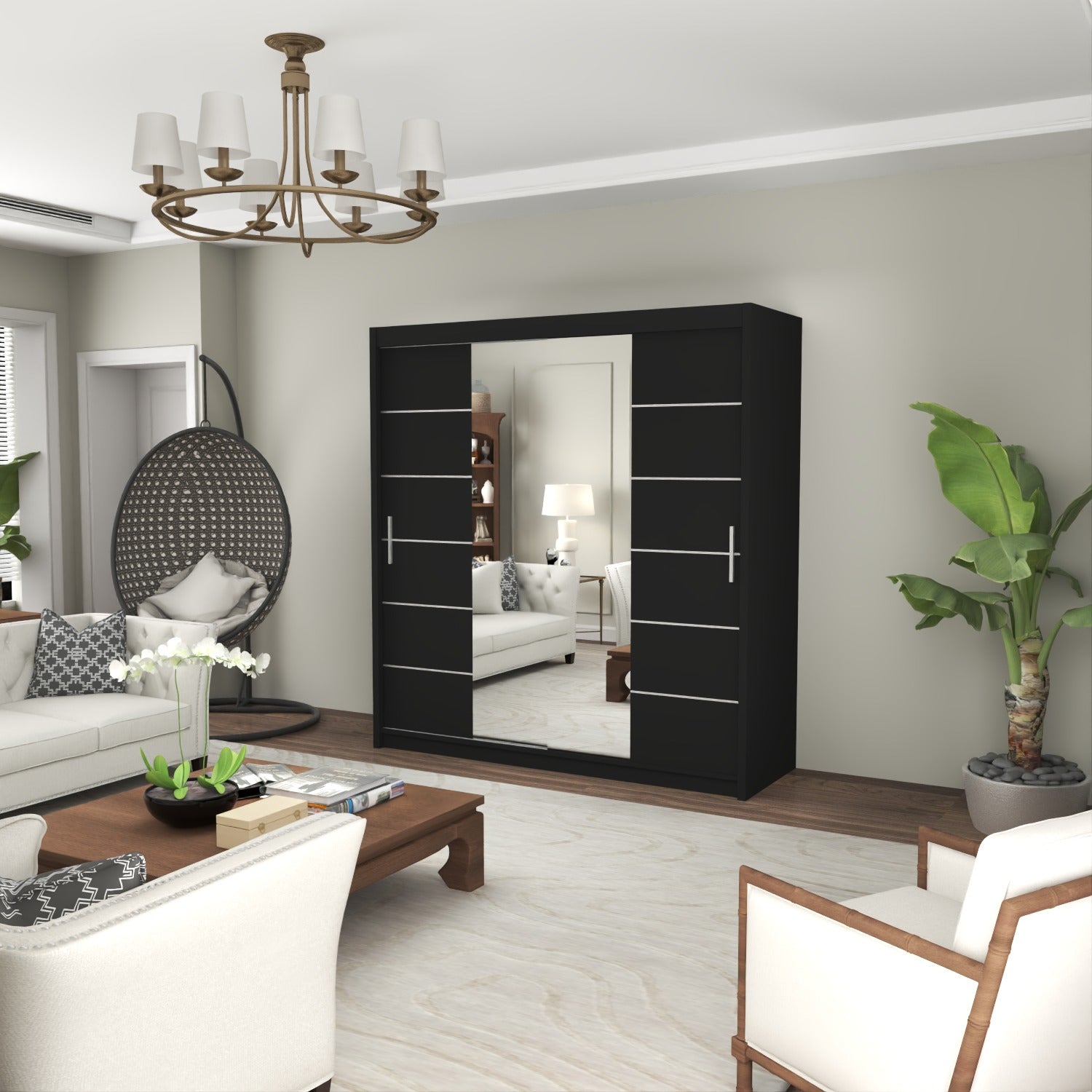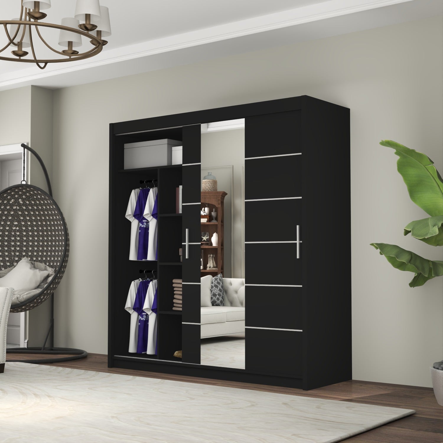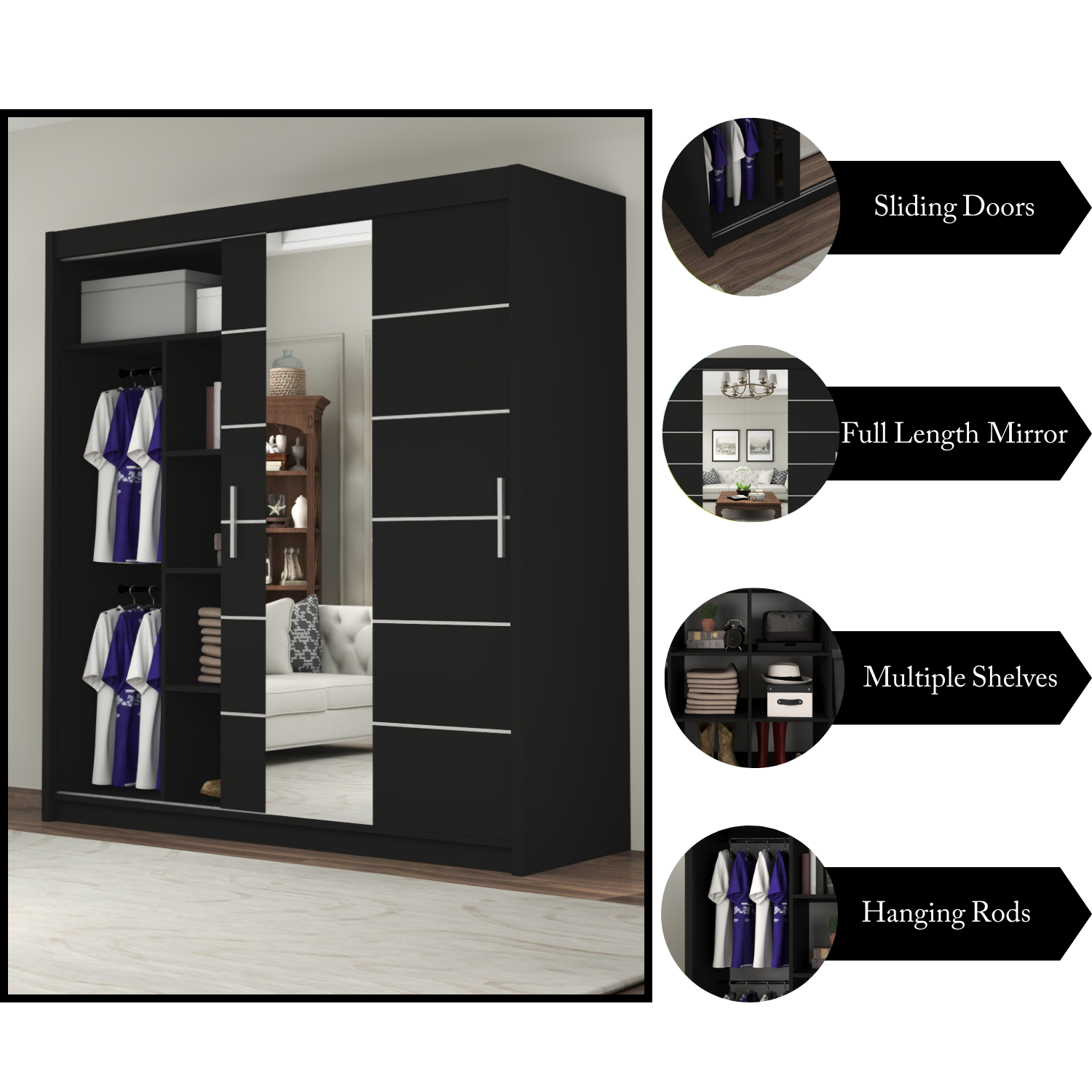 This wardrobe also benefits from the high-quality sliding mechanism and you would barely hear any noise with the smooth gliding motion of the doors. It is crafted from 16 mm laminated particle board to give you beauty, stability, and durability all in one! Add extra hanging rails and you can configure this wardrobe in different ways (refer to images).