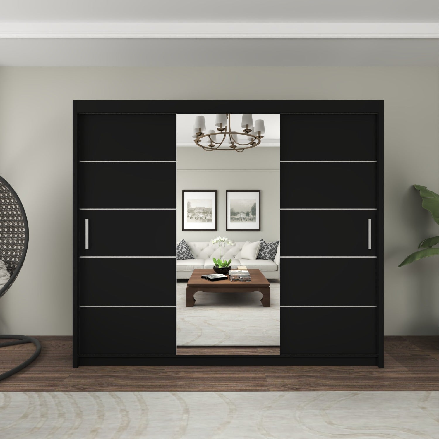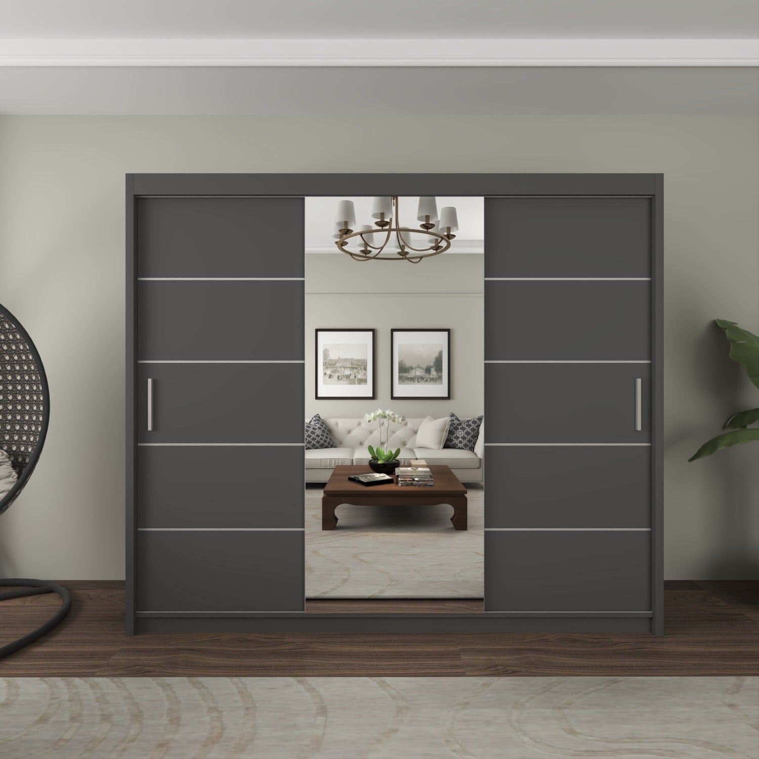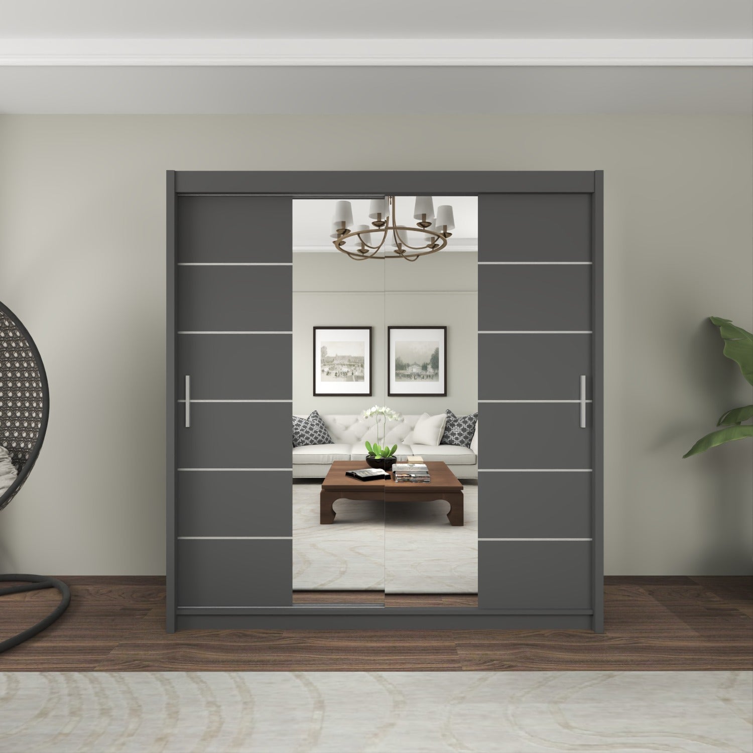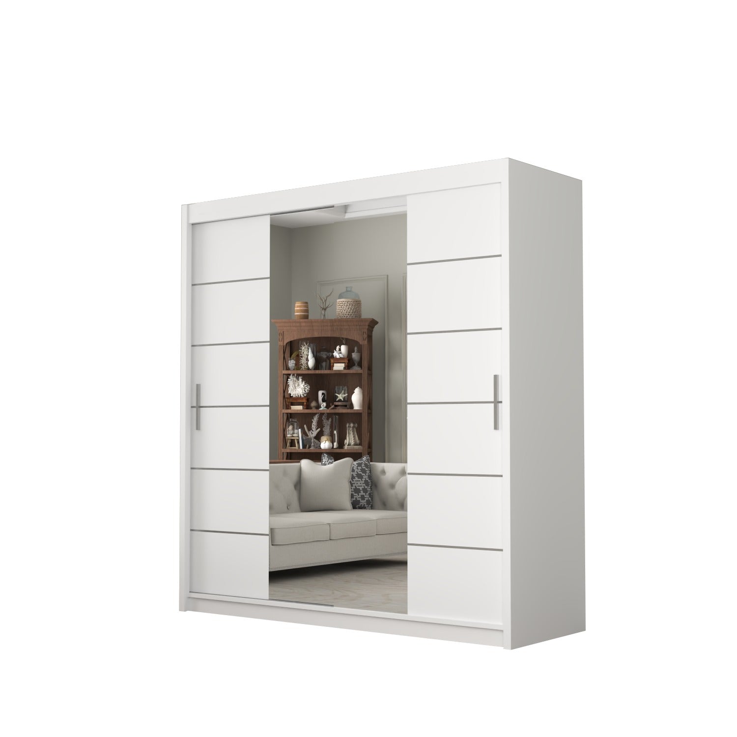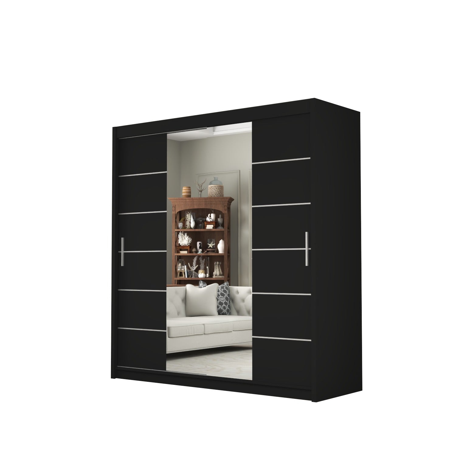 The LISBON Sliding Door Wardrobe epitomizes luxurious living and is the ultimate package with a price tag affordable for most! The full-length mirror on this wardrobe not only adds light to your bedroom but creates the illusion of enlarged bedroom space. The elegant horizontal paneled door further adds to this wardrobe’s beauty and also creates a calm, tranquil aura – perfect when you want your bedroom as a place where you can escape the hassle and bustle of the day! The Lisbon Sliding Wardrobe is equivalent to 4 single wardrobes. It boasts 8 huge cubed storage shelves, plus another 2 suitcase-size shelves on top. So there’s more than enough room for all your clothes, as well as bedding, boots, and storage boxes.
