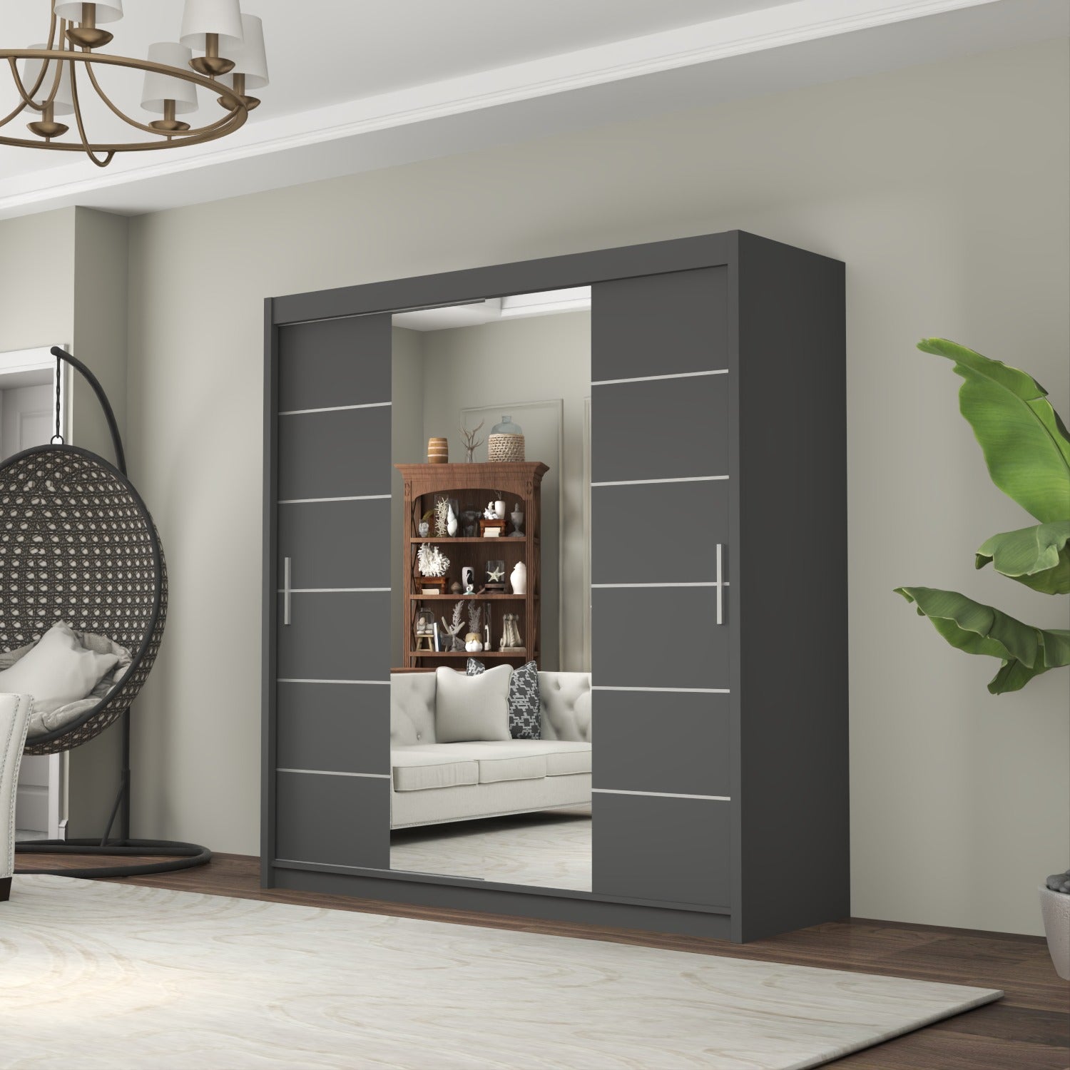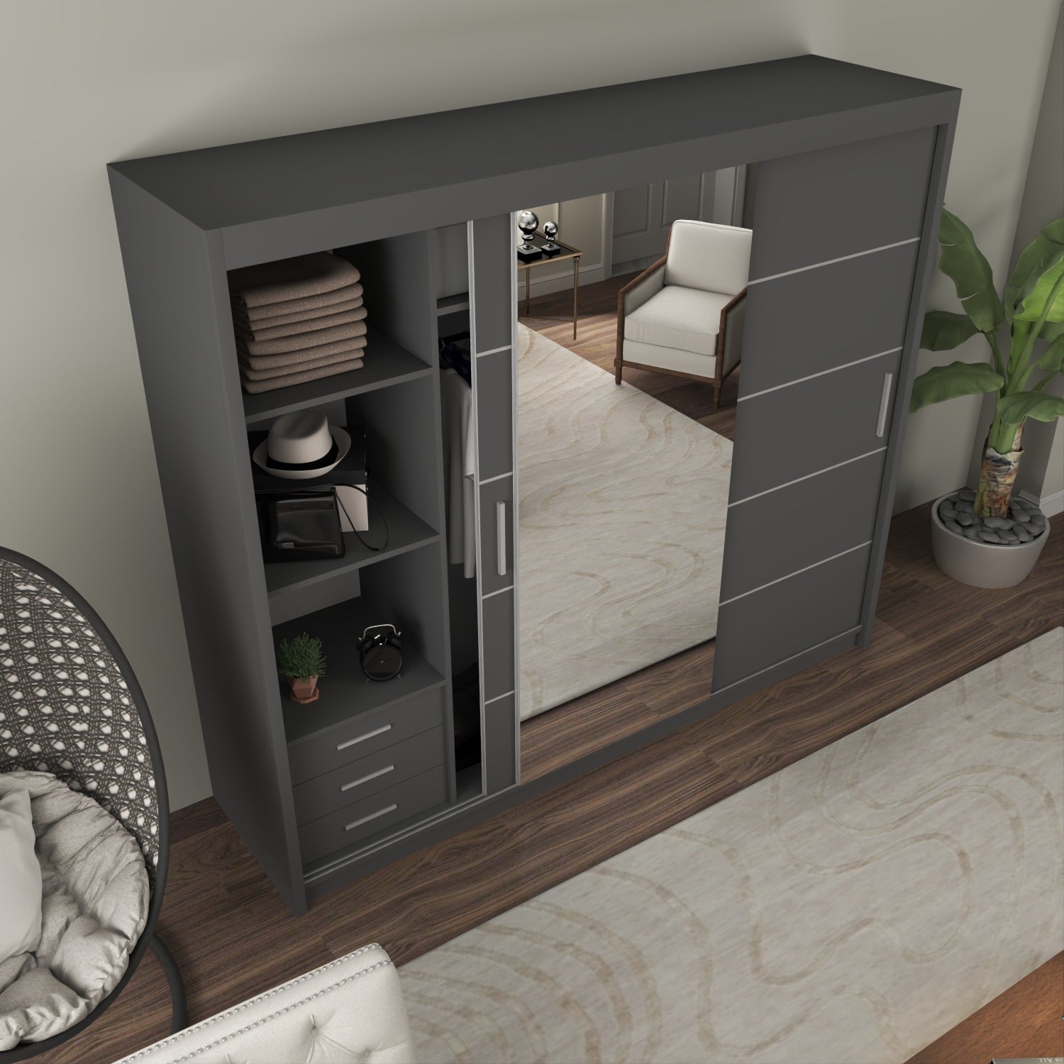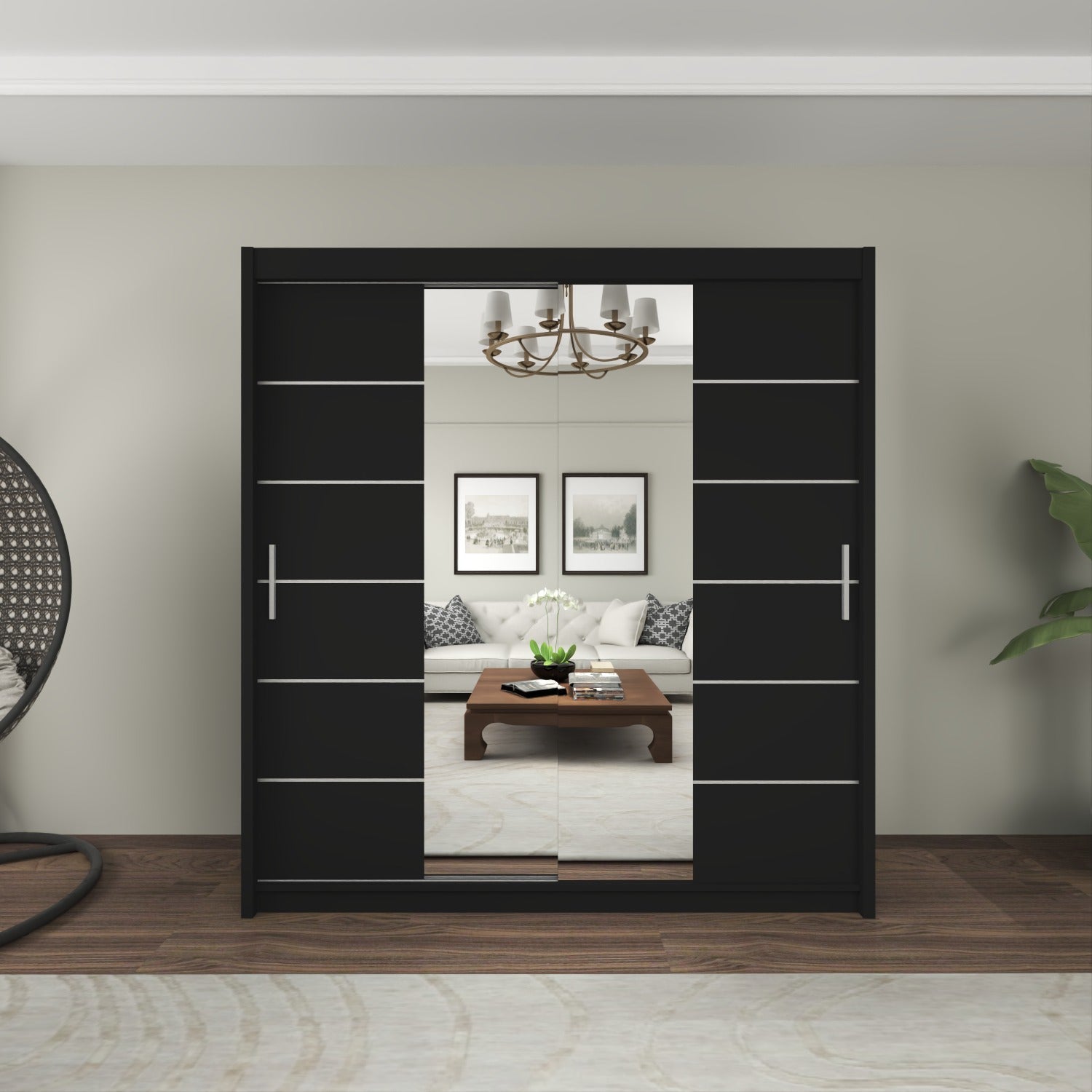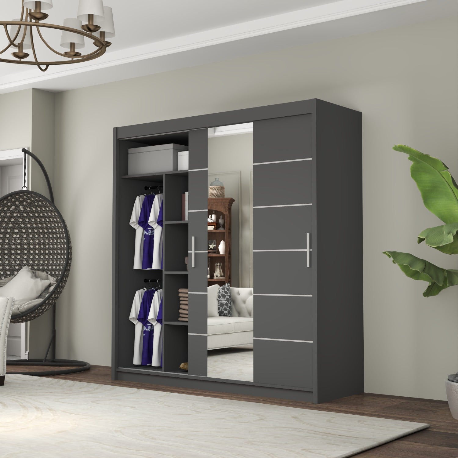 The LISBON Sliding Door Wardrobe epitomizes luxurious living and is the ultimate package with a price tag affordable for most! The full-length mirror on this wardrobe not only adds light to your bedroom but creates the illusion of enlarged bedroom space. The elegant horizontal paneled door further adds to this wardrobe’s beauty and also creates a calm, tranquil aura – perfect when you want your bedroom as a place where you can escape the hassle and bustle of the day! The Lisbon Sliding Wardrobe is equivalent to 4 single wardrobes. It boasts 8 huge cubed storage shelves, plus another 2 suitcase-size shelves on top. So there’s more than enough room for all your clothes, as well as bedding, boots, and storage boxes.