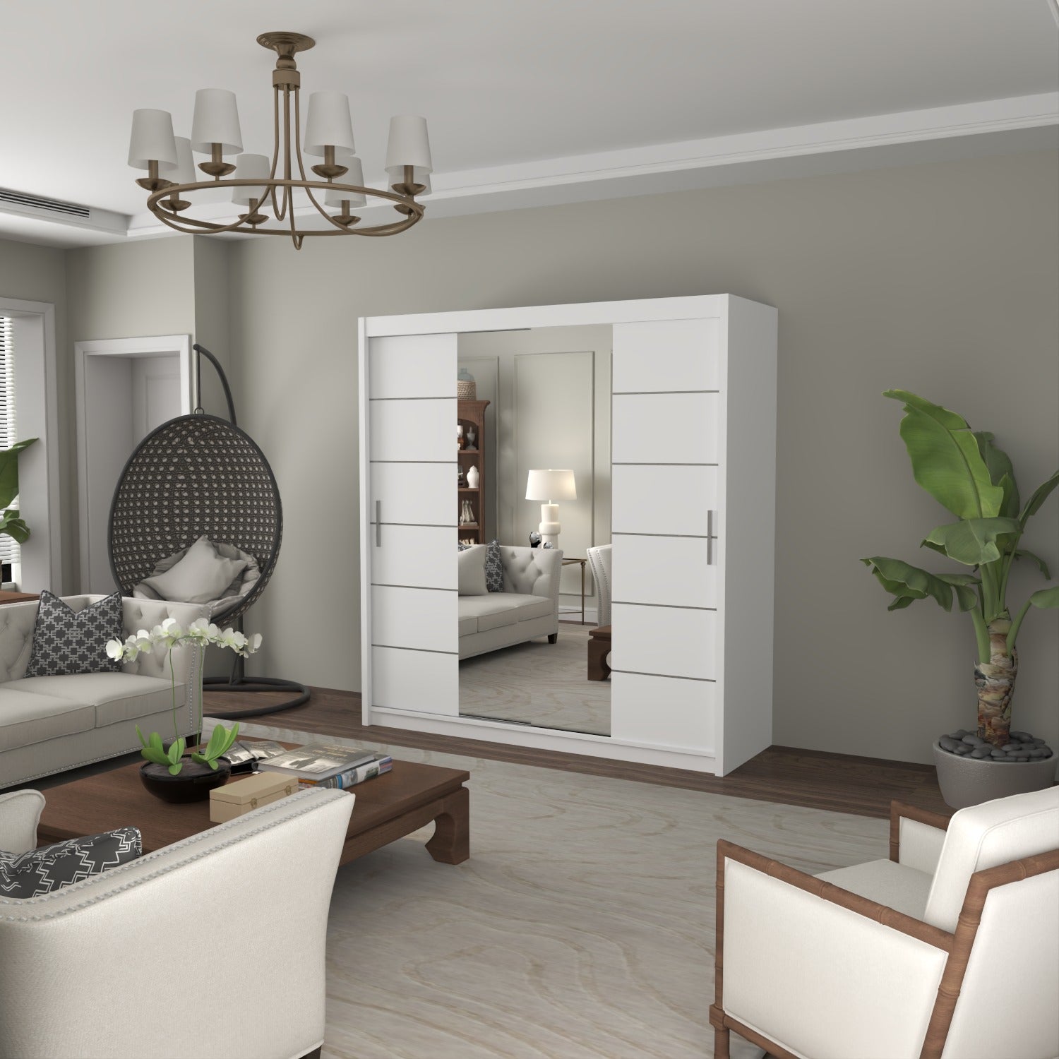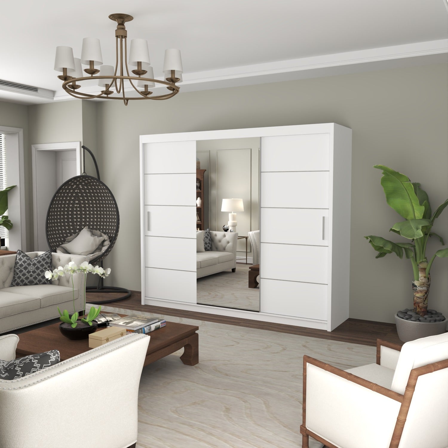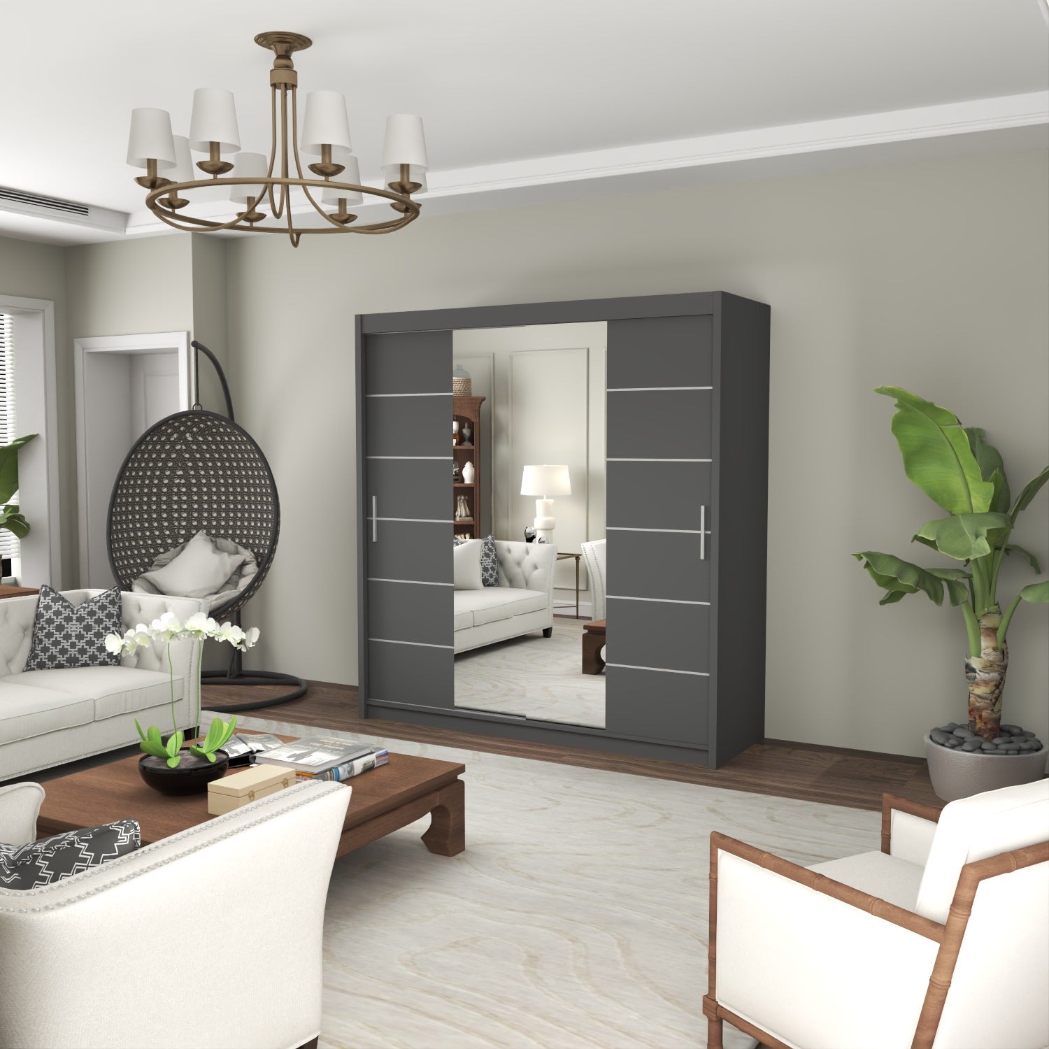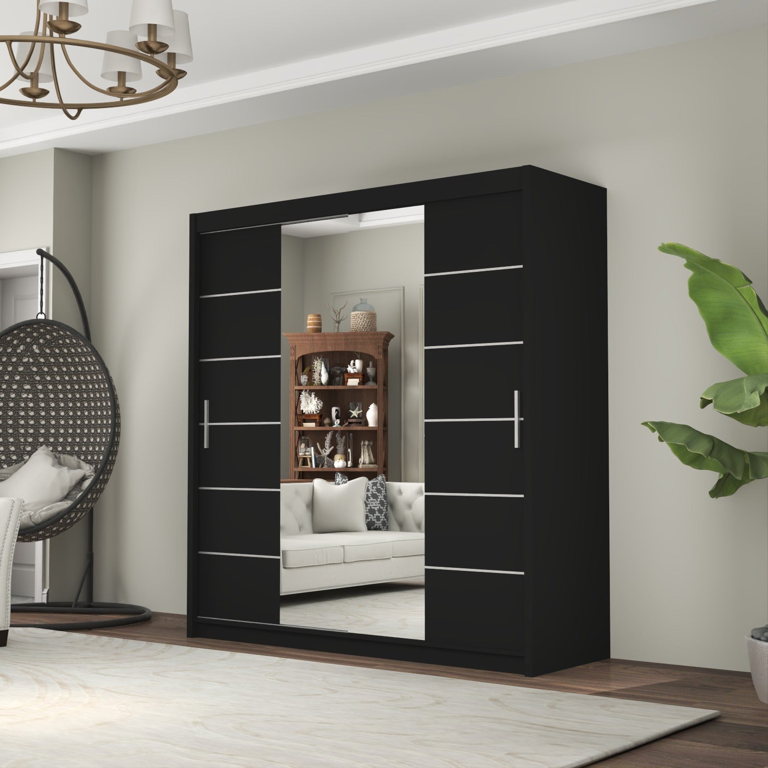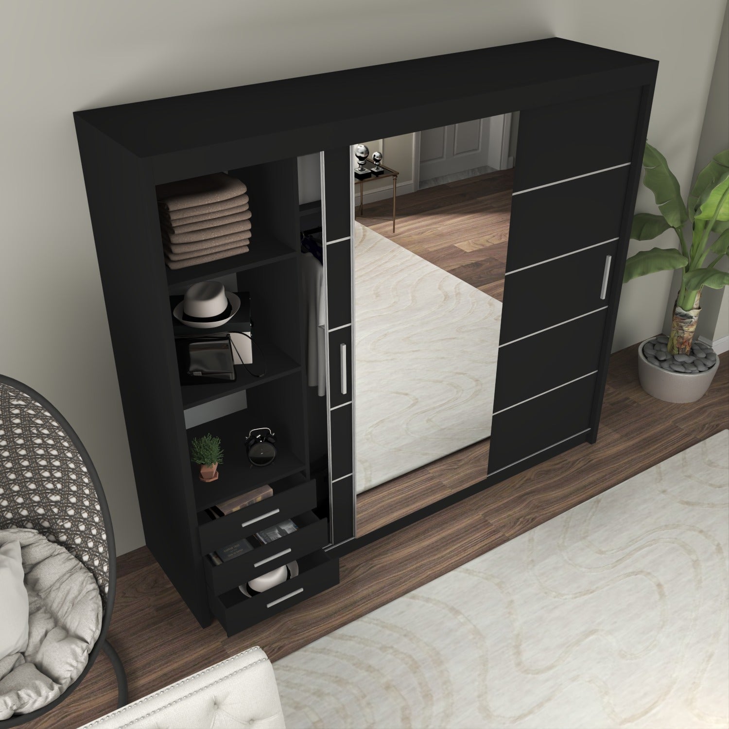 The LISBON Sliding Door Wardrobe epitomizes luxurious living and is the ultimate package with a price tag affordable for most! The full-length mirror on this wardrobe not only adds light to your bedroom but creates the illusion of enlarged bedroom space. The elegant horizontal paneled door further adds to this wardrobe’s beauty and also creates a calm, tranquil aura – perfect when you want your bedroom as a place where you can escape the hassle and bustle of the day! The Lisbon Sliding Wardrobe is equivalent to 4 single wardrobes. It boasts 8 huge cubed storage shelves, plus another 2 suitcase-size shelves on top. So there’s more than enough room for all your clothes, as well as bedding, boots, and storage boxes.
